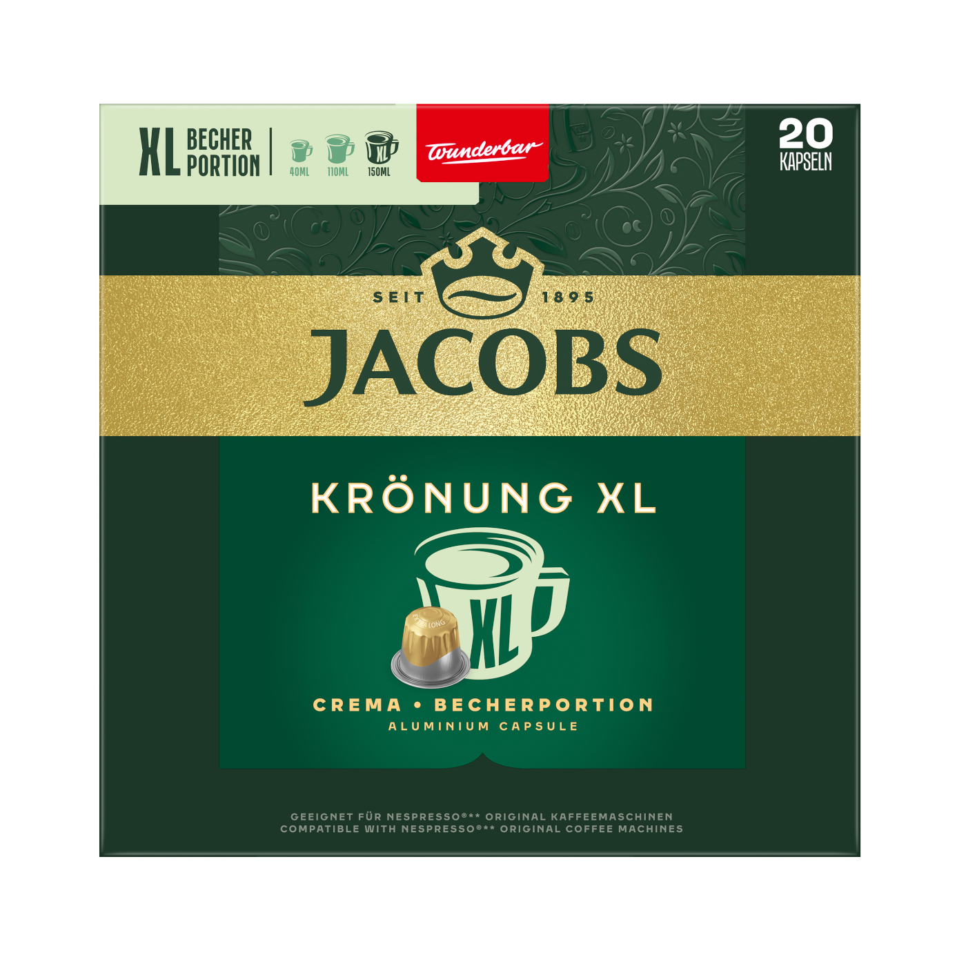 - Ikonische Jacobs Krönung als 150ml XL-Becherportion – aus nur einer Kapsel mit zwei Knopfdrücken